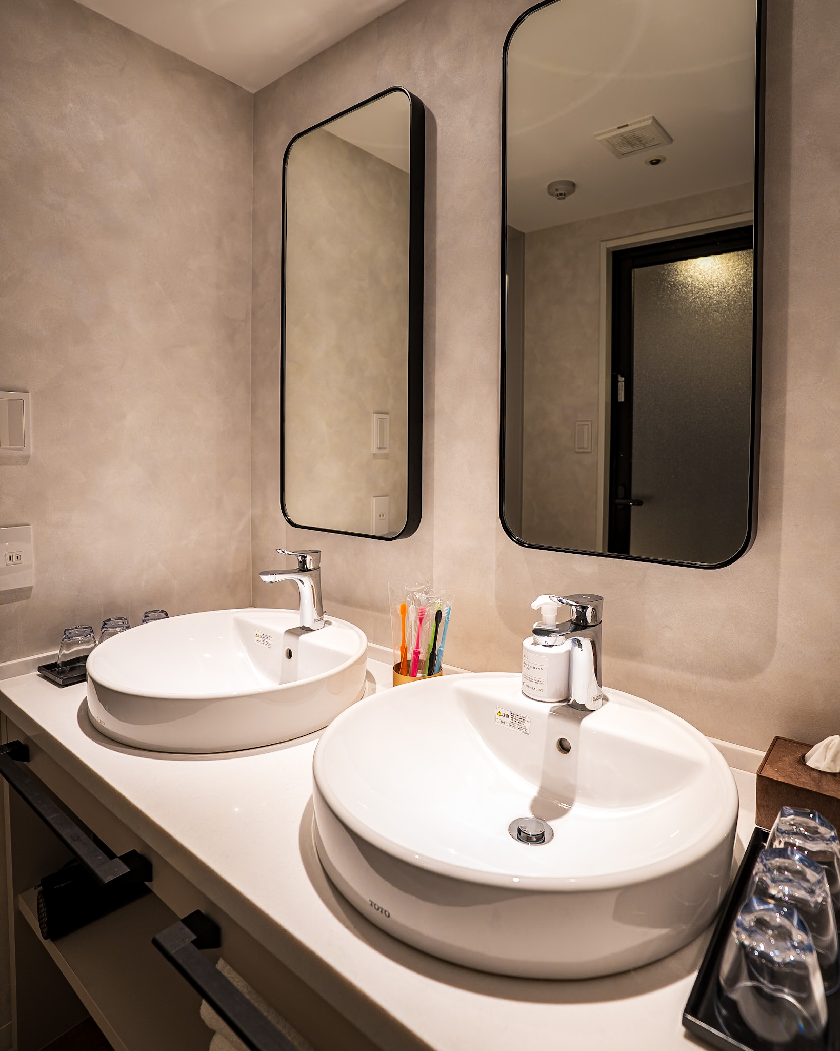 Inspired by the seas of southern France, Marin Floor rooms blend calming blue tones with comfort-focused details like a foot massager, screen-mirroring TV, and elegant seating. Guests can unwind with ORIENTALIST bath amenities enriched with Japanese and Chinese herbs, in a space designed for barefoot relaxation.